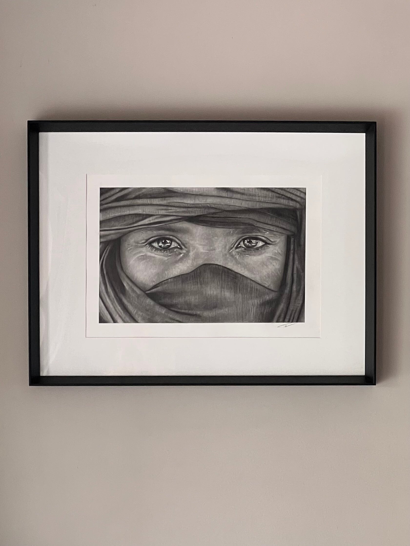 Ik specialiseer me in zwart-wit tekeningen, waarbij ik houtskool en grafiet combineer voor een tijdloos en expressief resultaat.
